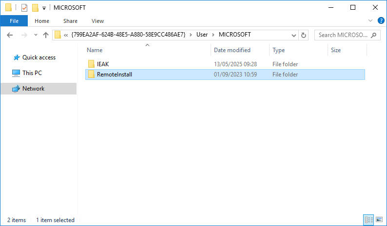 \\%USERDNSDOMAIN%\sysvol\%USERDNSDOMAIN%\policies\{GUID}\User\MICROSOFT - Remove the "RemoteInstall" directory.