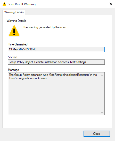 The Group Policy extension type 'GpoRemoteInstallationExtension' in the 'User' configuration is unknown.