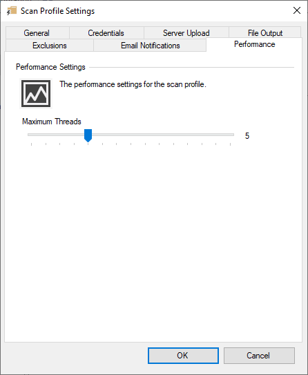 Determines the number of tasks this scan profile will run simultaneously. The more threads configured the more quickly the scan may complete, however more processor and network resources will be used.
