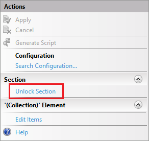 - In the Actions pane click Unlock Section.